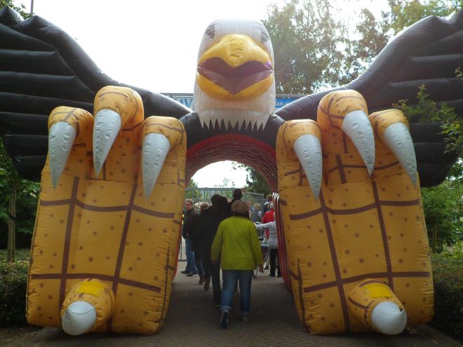 Teuge verkeert in 2012 nog niet in rep en roer vanwege geplande uitvliegroutes vanaf Vliegveld Lelystad. Helemaal rustig is het desondanks niet rondom de luchthaven. Vandaag op de dag af vijf jaar geleden zijn er roofvogels in aantocht. Adelaars. Uit Deventer!