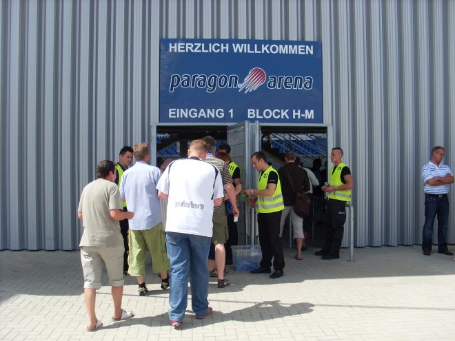 Met Huub ben ik van de partij bij het eerste competitieduel dat SC Paderborn ’07 in de fonkelnieuwe Paragon Arena afwerkt. Voor 7806 toeschouwers komt de ploeg van trainer Pavel Dotchev op de tweede speeldag in de nieuw gevormde Derde Liga niet verder dan een 1-1 gelijkspel tegen SpVgg Unterhaching.