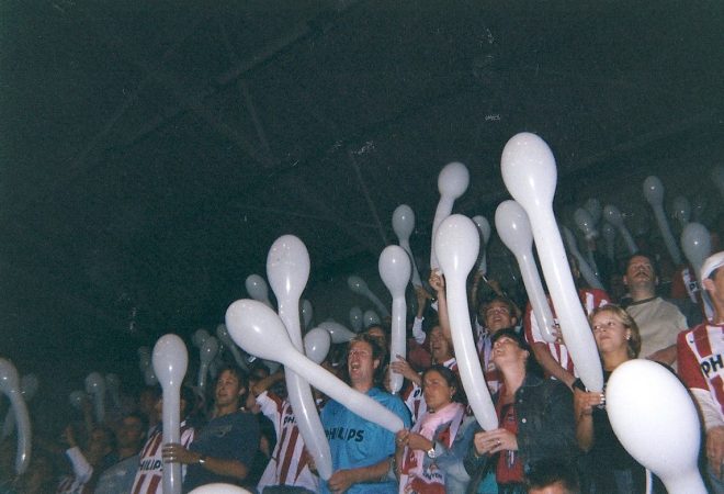 Ik neem op de koop toe dat ik op de bewuste dinsdagavond op de Oosttribune van het Philips stadion terecht kom. Aan de kant waar het meest fanatieke gedeelte van de PSV-aanhang zit. Tweede ring. Vak VV. Ik ben waarschijnlijk de enige Nederlander in het vak die bij de winnende goal van Jantje Vennegoor of Hesselink niet juichend opspringt.