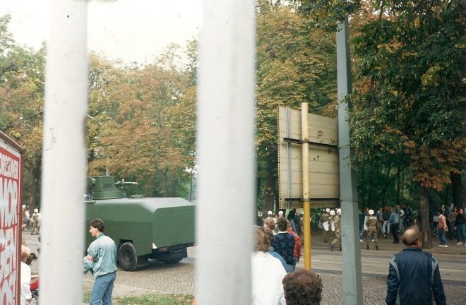 De DDR is Vergangenheit. In het machtsvacuüm dat is ontstaan, heeft de gehate Volkspolizei weinig meer zeggen. Haar gezag wordt niet meer geaccepteerd, zoveel is wel duidelijk. De politie krijgt de volle laag. Slechts met de allergrootste moeite en de inzet van het nodige zware materieel weet de Dresdense ME de orde te handhaven en de rust te herstellen.