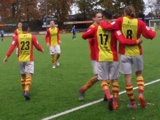 In de laatste minuut voor rust en de eerste minuut na rust legden de Apeldoorners de basis voor hun eerste thuiszege van het seizoen. Maarten Boeve liet na zijn openingstreffer in de 44e minuut de pauzethee lekkerder smaken. Binnen een minuut na het begin van de tweede helft verdubbelde Sander Krijns de voorsprong.