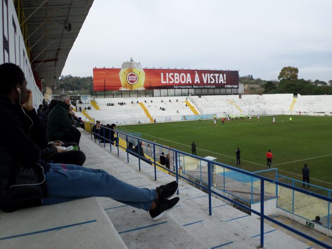 Het Tapadinha biedt plaats aan 15.000 toeschouwers. Als er die middag tegen Farense 1500 zitten, schat ik het erg ruim in. Bij 150 komt het aantal bezoekers van deze clash uit de Portugese Segunda Liga dichter in de buurt. Voor 9 euro beleef ik een wereldmiddag.