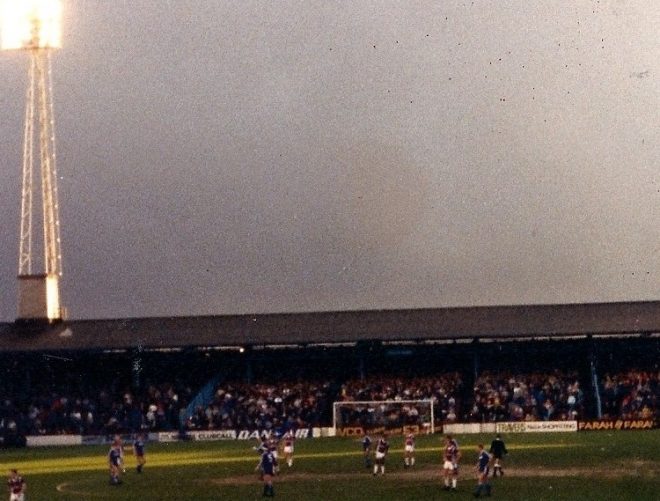 Upton Park oefent 112 jaar lang een magnetische aantrekkingskracht uit op voetbalfans in claret and blue. Als ik er op de tweede dag van 1988 terugkeer voor West Hams competitieduel tegen Luton Town in de Barclays League Division One, blijven troubles off the pitch achterwege. Per metro met de District line of de Hammersmith & City line oostwaarts. Steeds meer voetbalfans stappen onderweg in. Naarmate de plek van bestemming nadert wordt een zekere spanning voelbaar. Vanaf Upton Park tube station te voet naar het nabijgelegen stadion. Langs Green Street Market. Just follow the crowd.