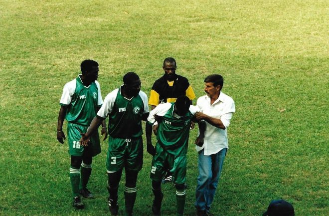 De spelers, bijna zonder uitzondering donker van huidskleur, zijn stuk voor stuk fantastische atleten. Ze blinken echter niet bepaald uit door hun spelintelligentie. Het fel meelevende publiek vindt het in elk geval prachtig. Telkens wanneer de capitalinos in de buurt van de Pinar-goal komen, springen de aficionados op. Het kleine, overvolle tribunetje veert behoorlijk mee, maar gelukkig stort het wankele zaakje niet in.