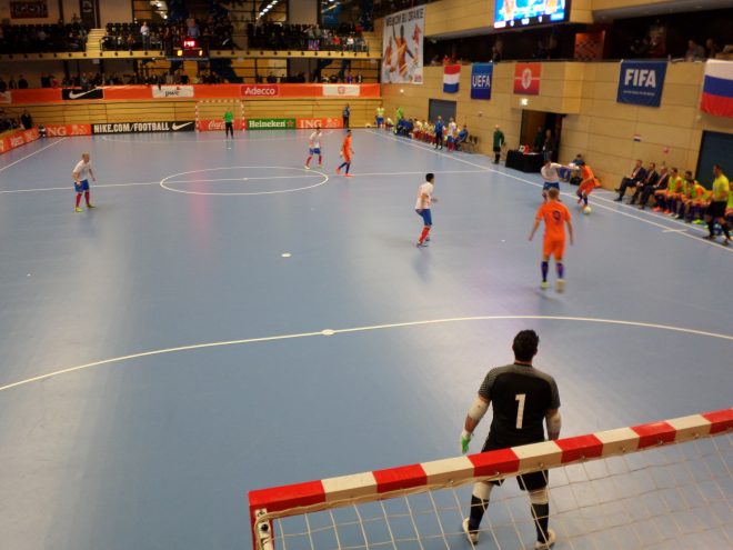 In het Landstede Sportcentrum zie ik hoe ’s lands beste zaalvoetballers de eer van volk en vaderland verdedigen in een oefeninterland tegen Rusland. Een heuse primeur.