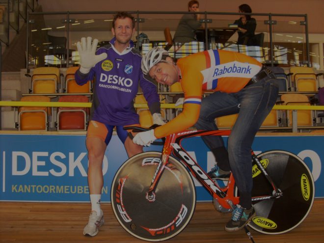 Voor de voorjaarsuitgave van het AGOVV Magazine zit ik in de aanloop naar het WK baanwielrennen van 2011 samen met Stefan Postma en Teun Mulder in Omnisport. Een dubbelinterview met de toenmalige keeper van AGOVV en ’s lands beste baanwielrenner van dat moment lijkt op het eerste gezicht niet zo voor de hand liggend.