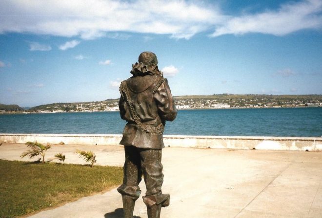 Ver van huis, maar toch zo vertrouwd. Wandel ik op m’n dooie akkertje in Matanzas langs de baai en wie zie ik daar ineens op een voetstuk staan? Niemand minder dan Piet Hein!