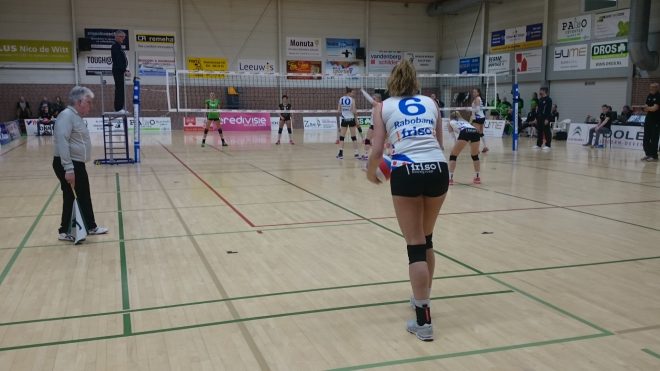 Het eerste play-offduel begon woensdagavond hoe dan ook bijzonder veelbelovend voor de Apeldoornse volleybalsters. Met 25-21 besliste de wilskrachtige thuisploeg de eerste set overtuigend in z’n voordeel. De toeschouwers in de Alternohal gingen er eens goed voor zitten. Een vlotte 0-9 achterstand in het tweede bedrijf bleek evenwel iets te veel van het goede om nog ongedaan te maken. Met 16-25 trokken de Friezinnen de score weer gelijk.