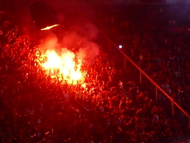 De enigen die vlammen in de ArenA zijn de in groten getale meegereisde Albanese supporters. De Bengaalse fakkels die zij afsteken, vormen vooral het bewijs dat het stadionpersoneel niet al te secuur te werk is gegaan bij het fouilleren van de fanatieke aanhangers uit de Balkan.