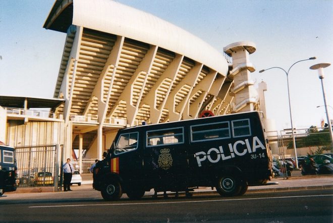 Een dagje de toerist uithangen in Palma de Mallorca krijgt ’s avonds in het Estadio Son Moix een aangenaam vervolg. Kaarten hebben we niet, maar dat is no problema. Aan de stadionkassa’s zijn er nog meer dan voldoende verkrijgbaar. We mogen kiezen: 12000 Pesetas voor een overdekte zitplaats of 14000 Pesetas voor overdekt zitten.