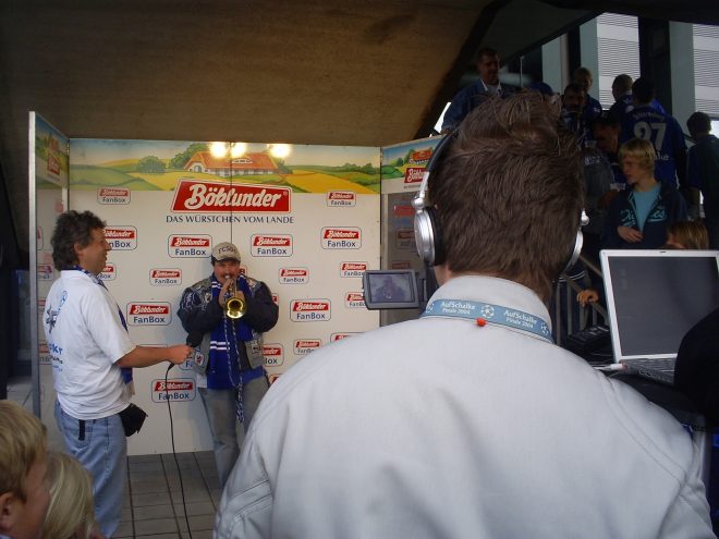 Zolang ik me kan herinneren kan elke supporter die wat te melden heeft voorafgaand aan thuiswedstrijden van Schalke 04 zijn persoonlijke boodschap kwijt in de door de worstfabrikant Böklunder (‘Das Würtschen vom Lande’) gesponsorde FanBox.